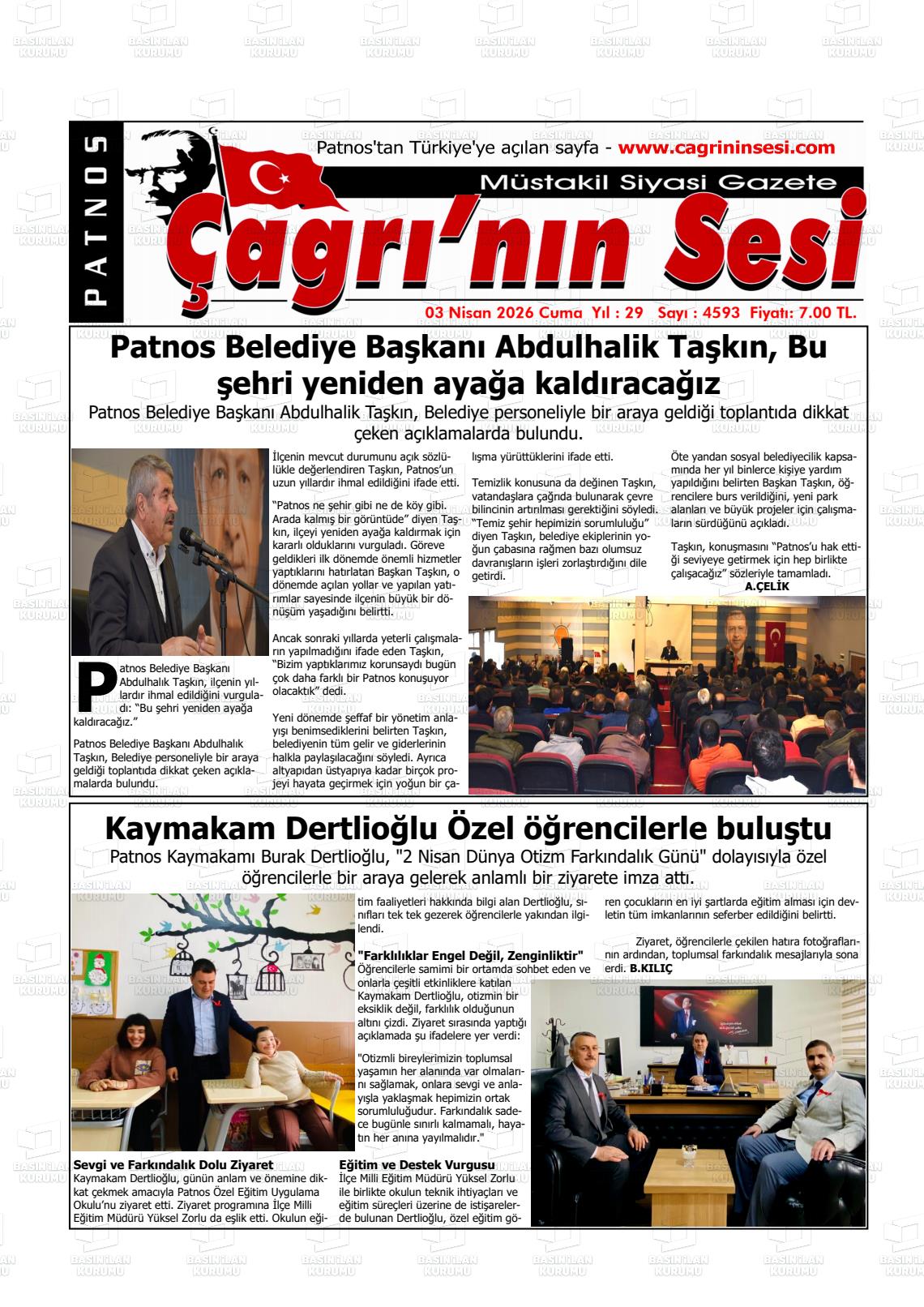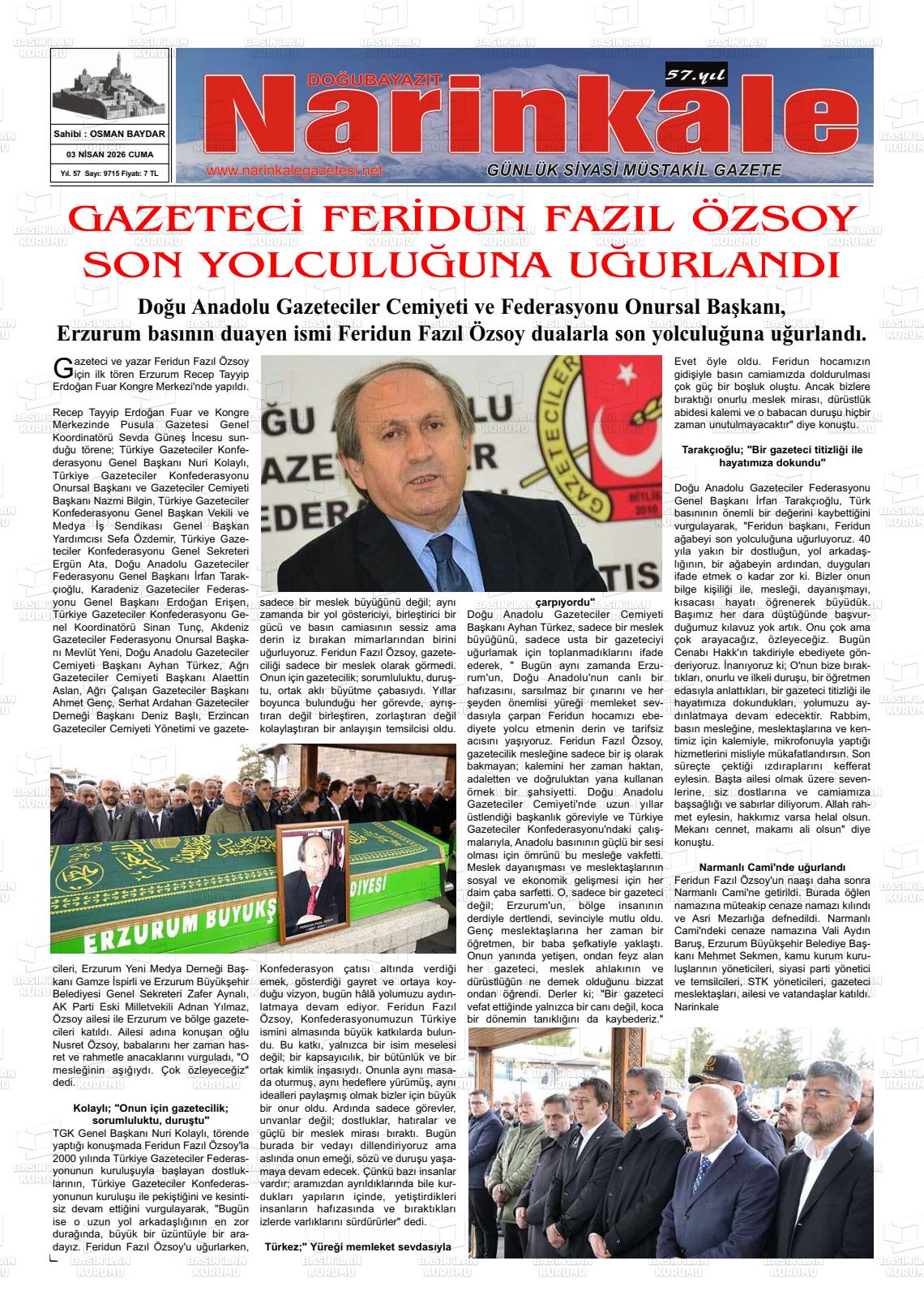03 Nisan 2026, Cuma Günü Manşeti