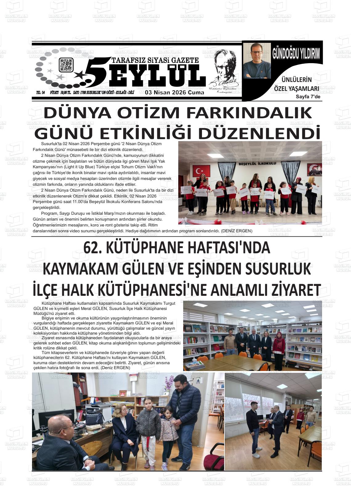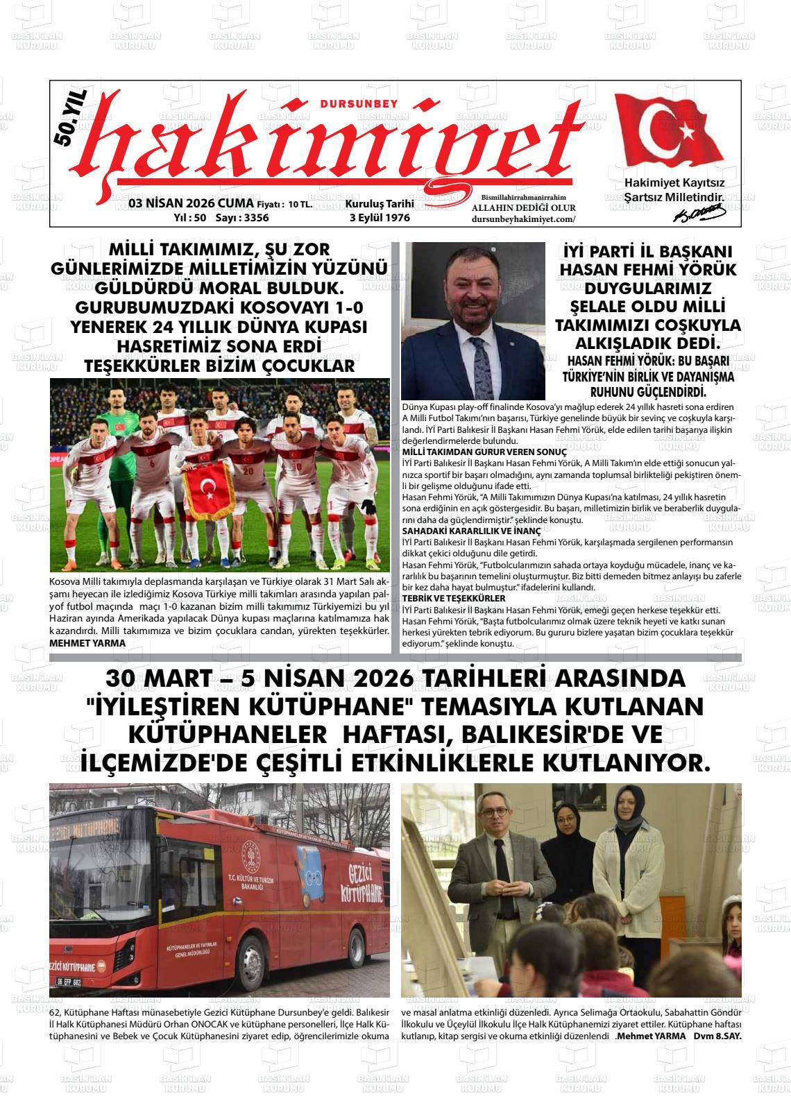 03 Nisan 2026, Cuma Günü Manşeti