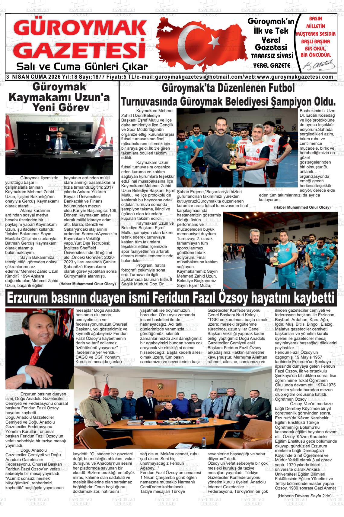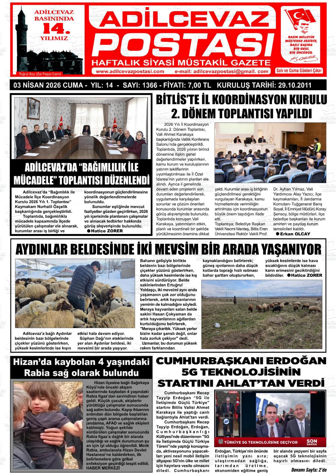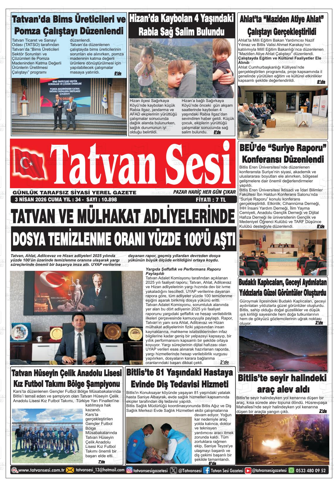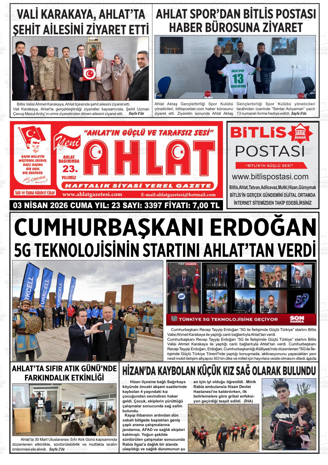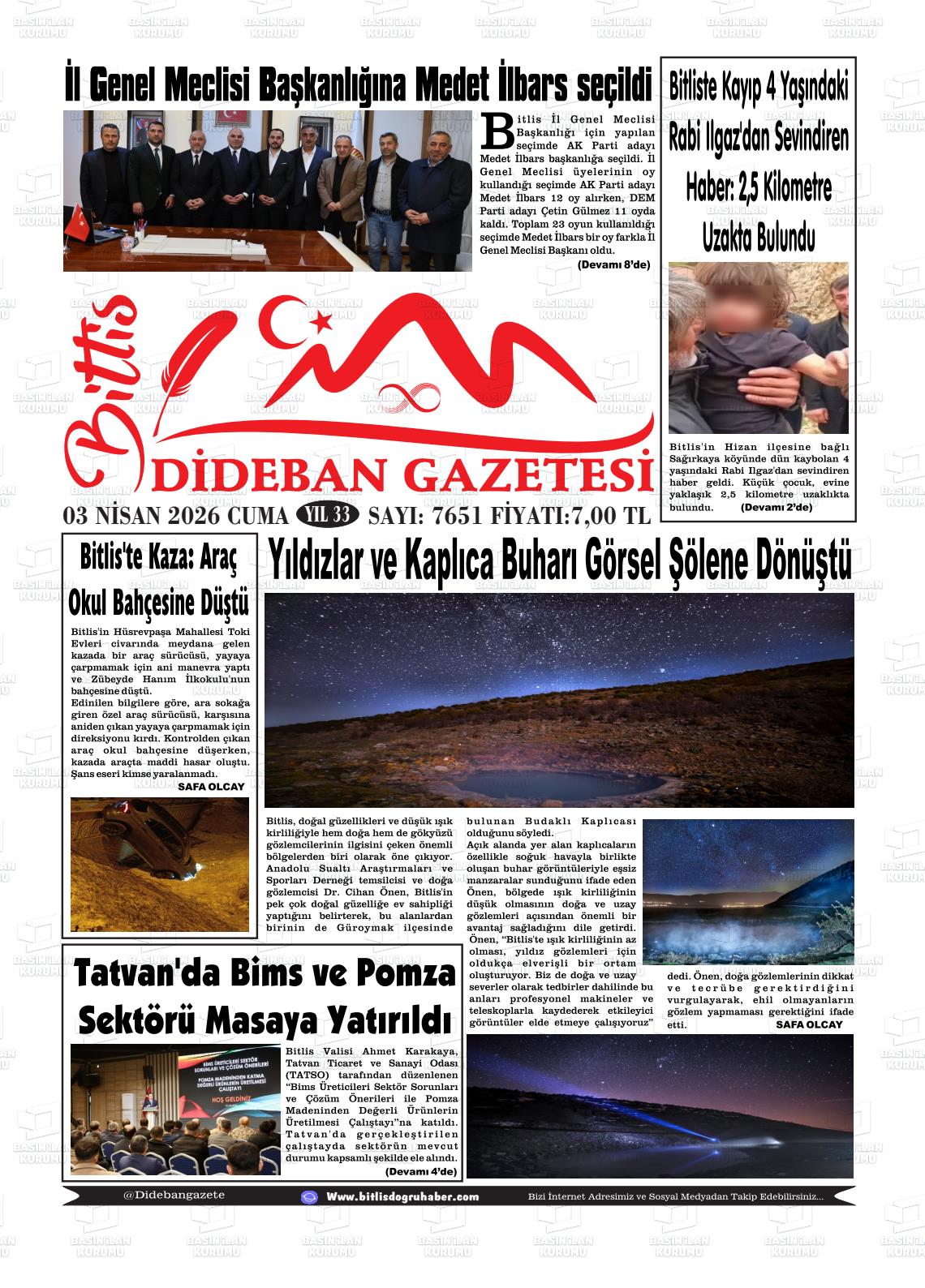 Bİtlİs Yerel Gazeteleri 03 Nisan 2026, Cuma Günü Manşeti