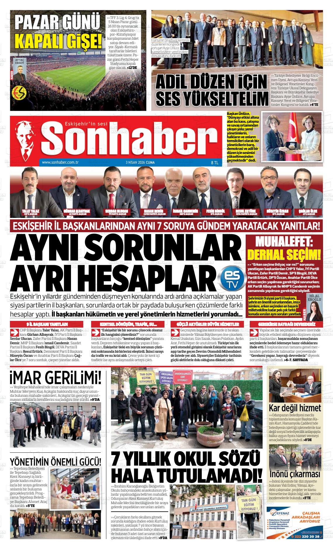 Eskİşehİr Yerel Gazeteleri 03 Nisan 2026, Cuma Günü Manşeti