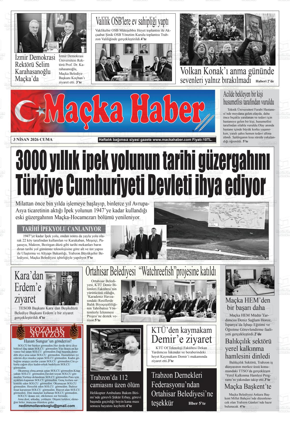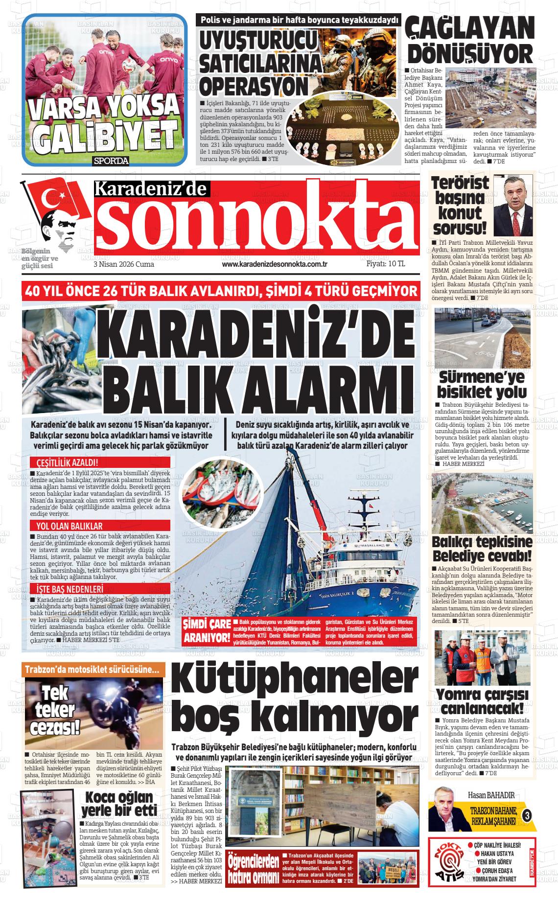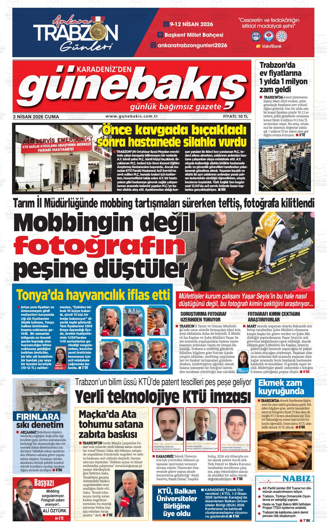 Trabzon Yerel Gazeteleri 03 Nisan 2026, Cuma Günü Manşeti