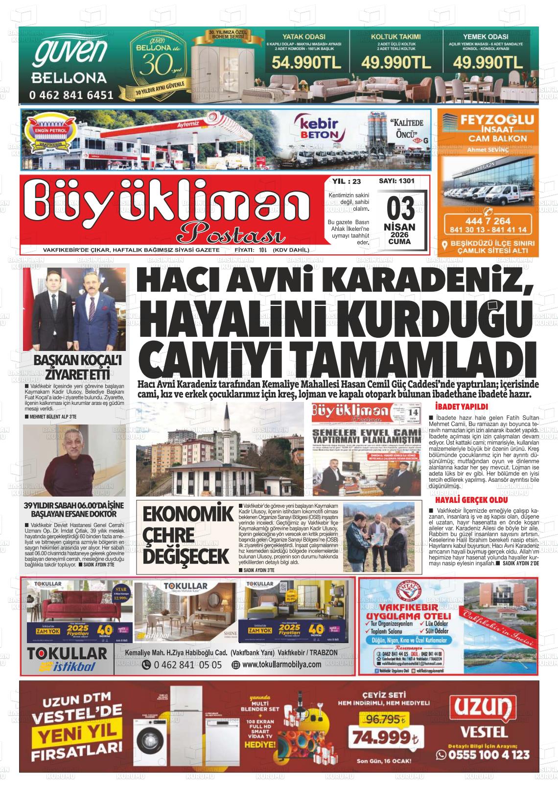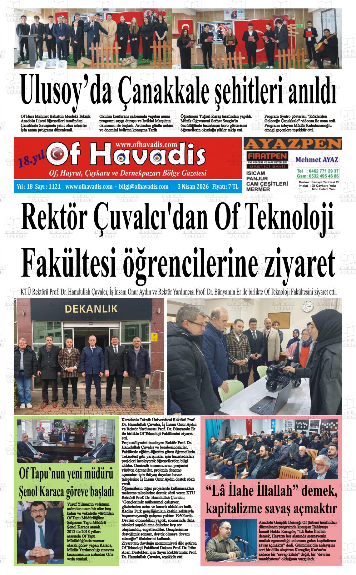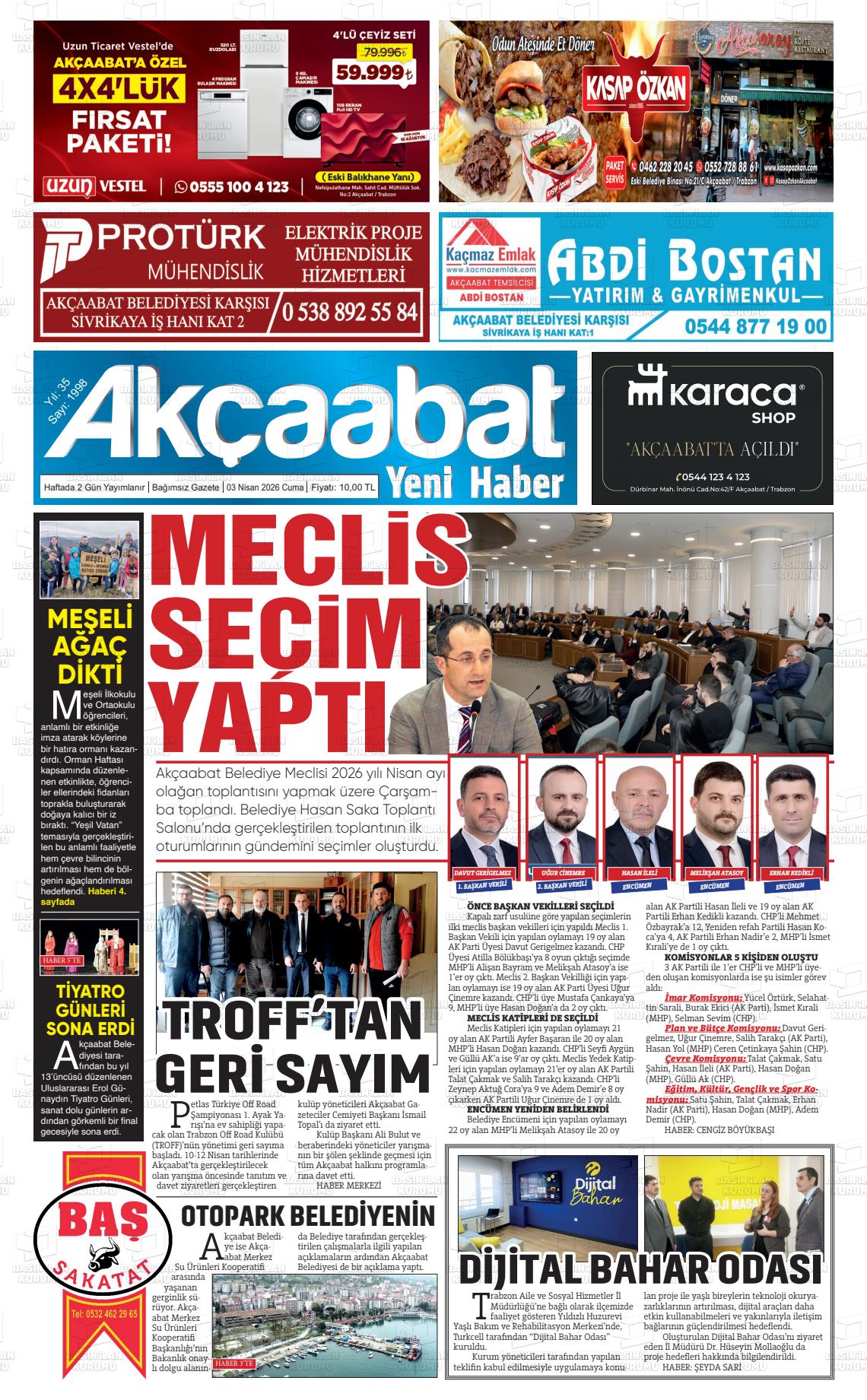 Trabzon Yerel Gazeteleri 03 Nisan 2026, Cuma Günü Manşeti